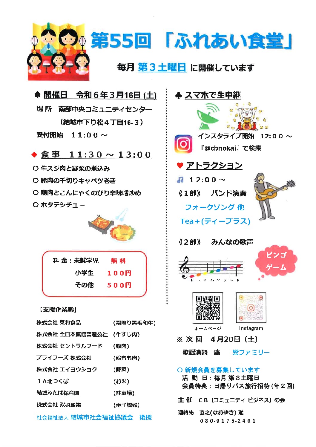 4月20日 南部中央コミュニティセンター(結城市下り松4-16-3) アトラクション 12:00~